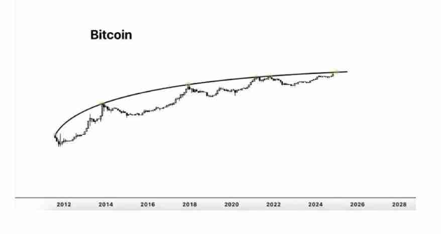 时间维度:2017年见顶至2021年见顶相隔约1435天,而自2021年高点至今已过去约1373天。即使不考虑超级周期理论,仅按4-5年阶段性周期推演,距离潜在顶部也仅剩2-3个月。因此,从周期节奏来看,现在正是开始分批离场的合理时机。