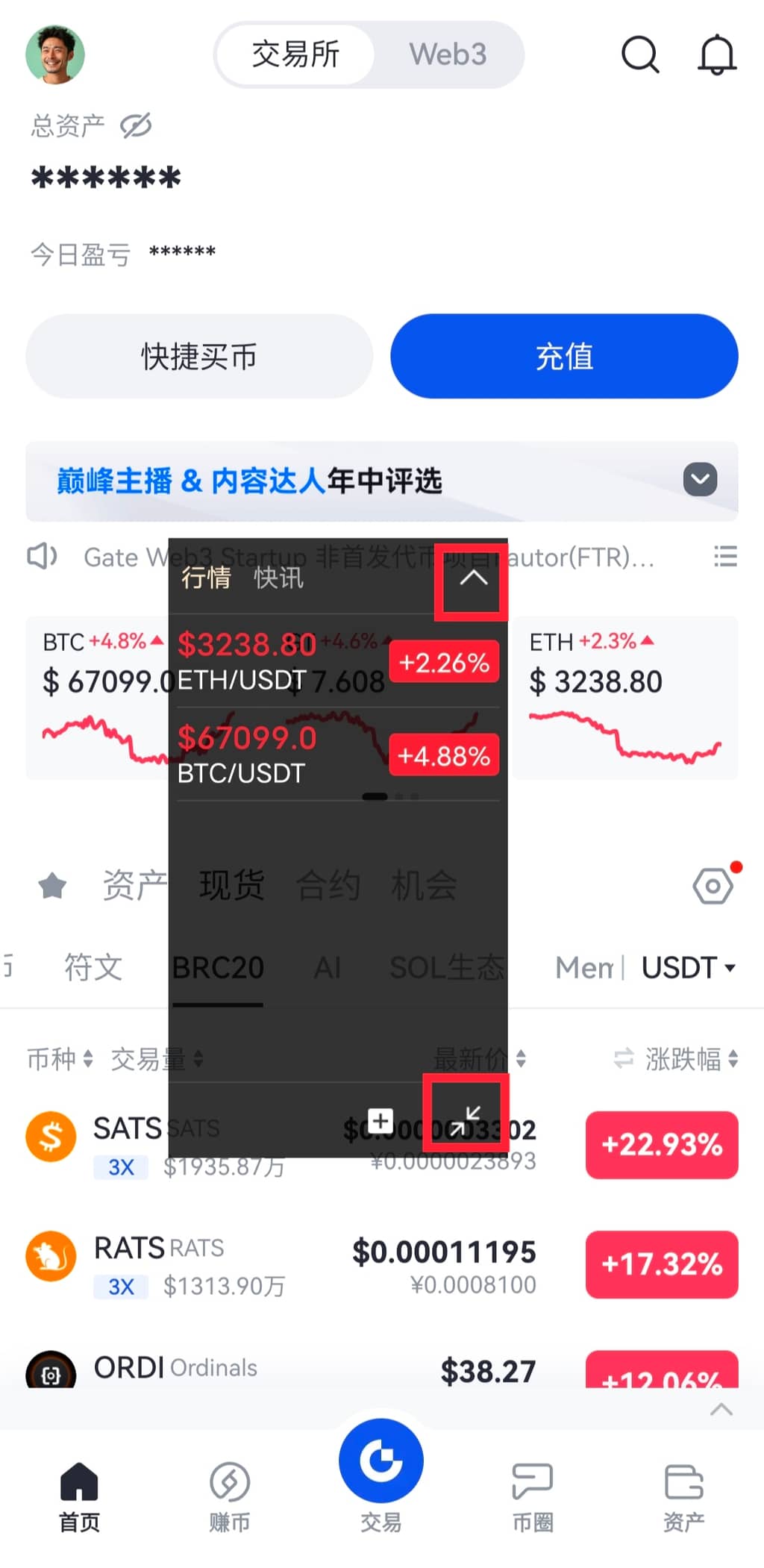 在 Gate App 中,价格浮窗功能是可以使虚拟币市场行情悬浮显示在手机屏幕上的工具,便于用户实时查看所关注币种的价格。