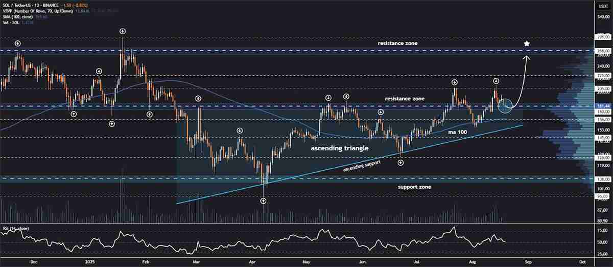 - 技术面显示SOL正瞄准260美元价格目标。