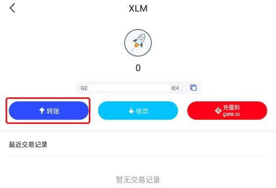 1. 手机 App 版充值方法(以从 Wallet.io 钱包充值 XLM 到 Gate 为例):