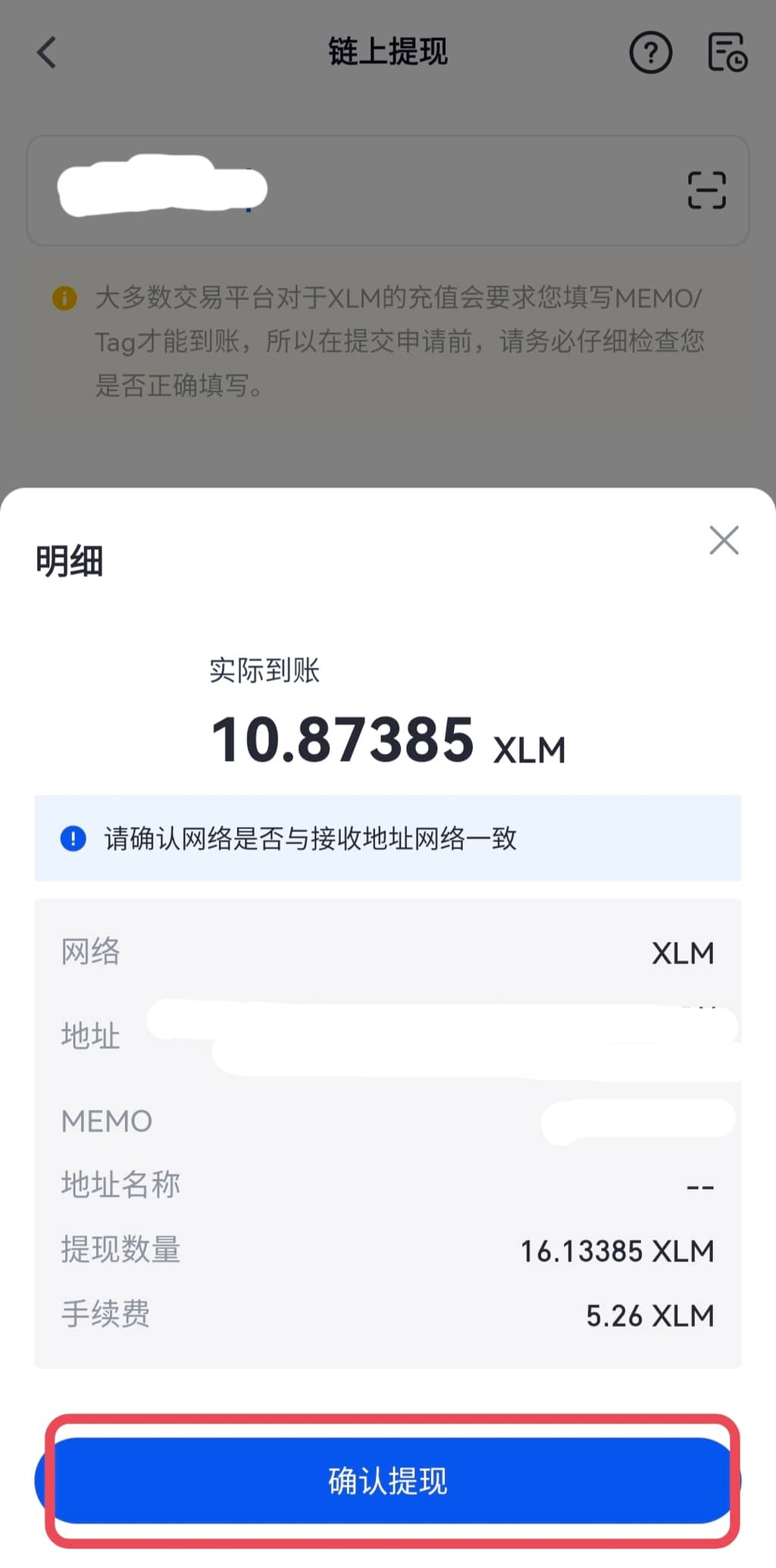 (1)App 操作提现 Memo/Tag 需填写在备注处,切记核实好对方钱包是否需要填写备注标签。