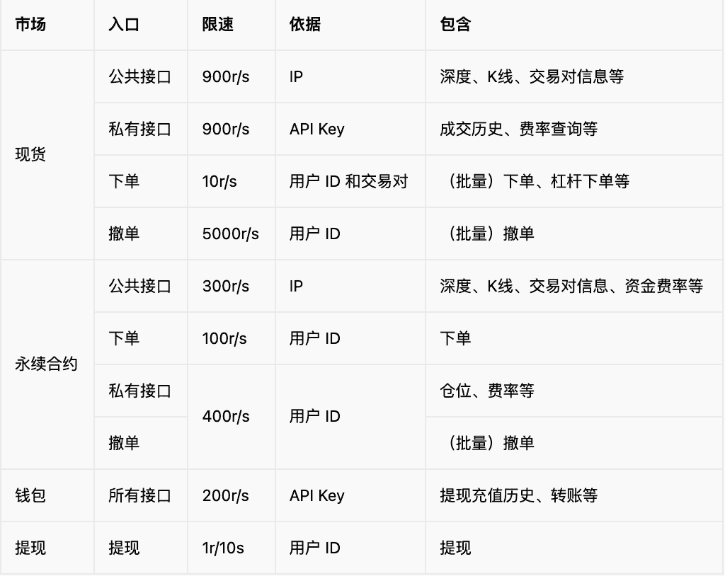 - APIv2 在交易操作上只支持现货交易,APIv4 支持现货、杠杆和合约的完整交易操作;