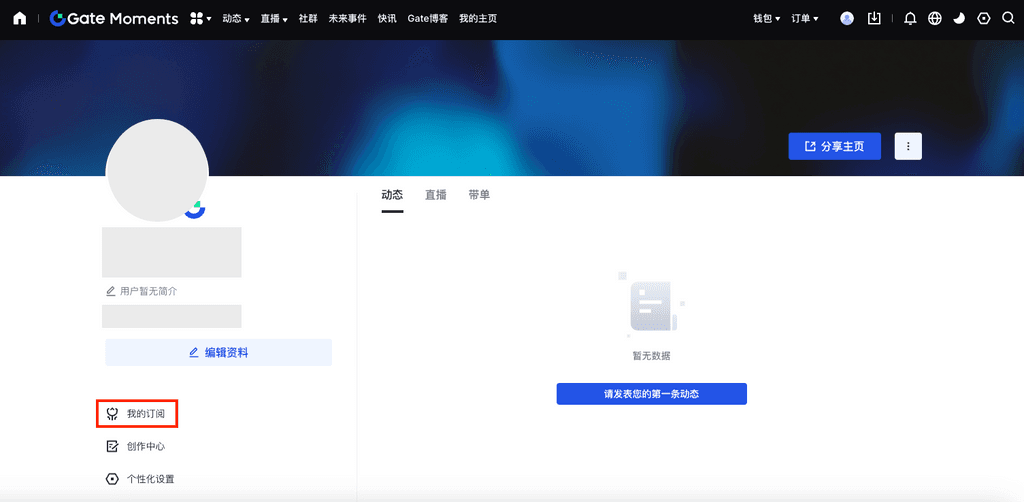 3、进入欲订阅用户的动态页面,点击头像下方“订阅”。