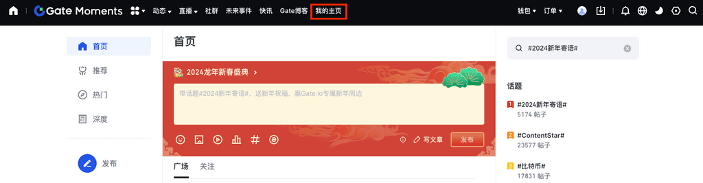 1、登录Gate个人账户——点击导航栏“币圈”——“动态”。