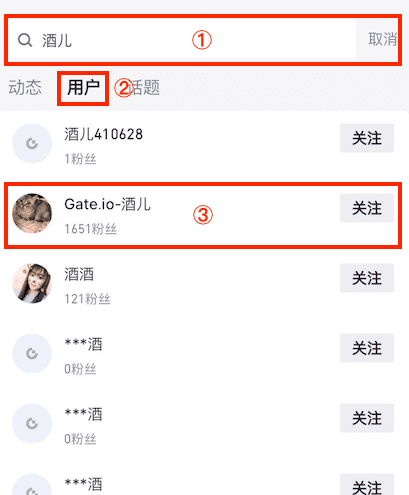 1、打开Gate App,登录个人账户,点击页面底部“币圈”——“动态”——点击右上角“搜索”标识。