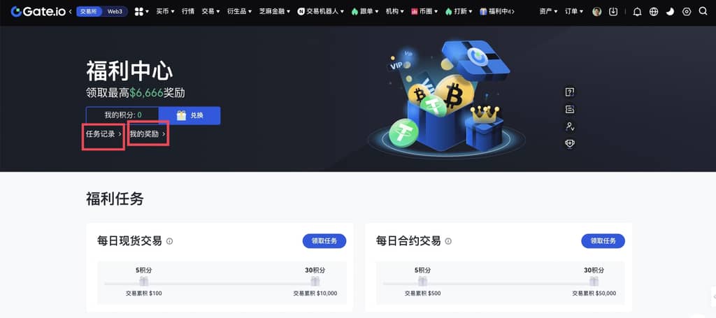 在网页端查询福利记录非常简单,首先,用户需登录Gate个人账户,点击导航栏左上角的四叶窗,选择“福利中心”或直接点击“福利中心”进入相应页面,接着在“福利中心”中,用户可以点击“任务记录”查看已领取的任务和完成情况,或点击“我的奖励”查看获得的奖励;而在App端查询同样方便,用户只需打开Gate App,登录后点击左上角头像,在下拉菜单中找到“活动&福利”并进入“福利中心”,在此页面内同样可以点击“任务记录”与“我的奖励”进行相关查询,整个过程简单易懂,确保用户能够方便快捷地获取所需信息。