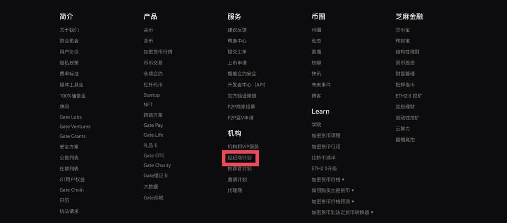可登录Web端,点击Gate网页下方列表-服务-经纪商计划。