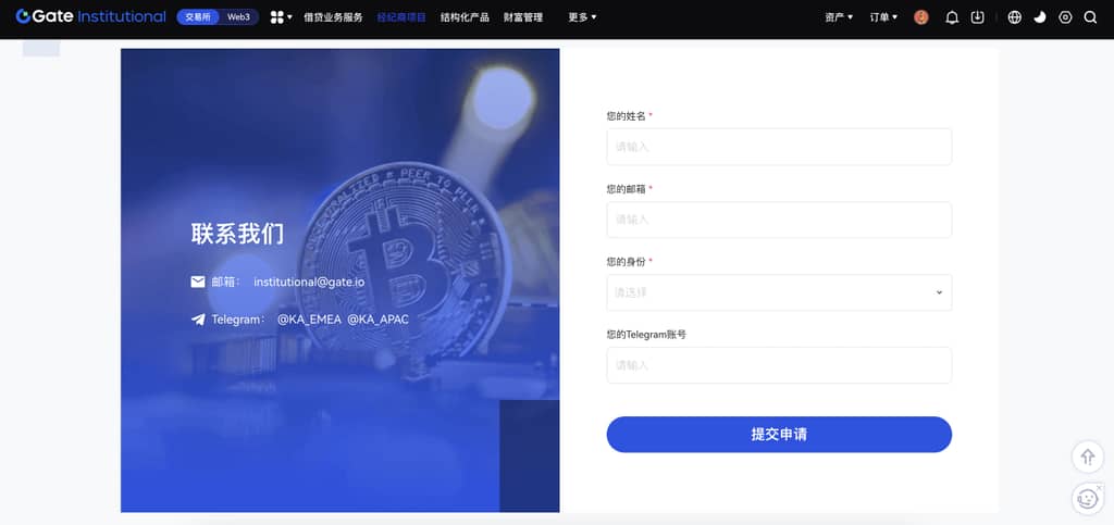 请填写此表单申请: https://www.gatenode.ch/questionnaire/692 申请后会有经纪商经理联系您,有问题可以随时联系对接经纪商经理。