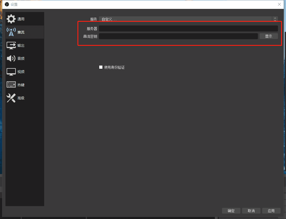 7、这里会要求设置服务器和串流密码。这两个内容可以在您申请的直播开播时间前十分钟内通过动态-个人主页-直播获得。