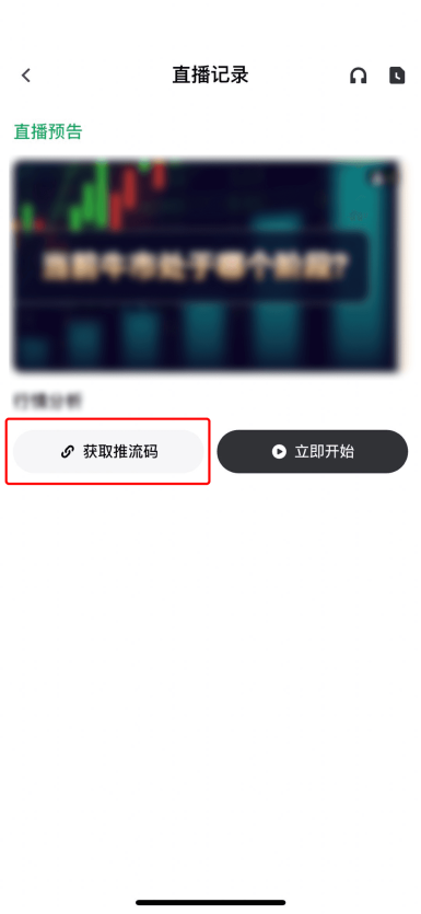 提交直播申请且审核通过后,可以在直播记录页面右上角获取“直播推流码”。