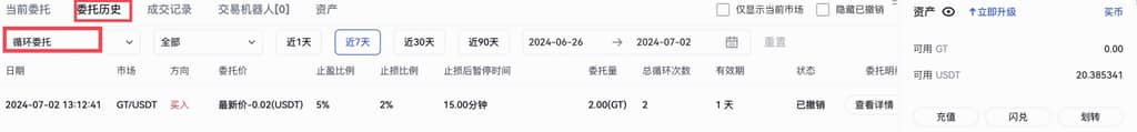 已达到循环次数、到期、撤销或委托失败的循环委托订单可以在“委托历史”——“循环委托”中查看: