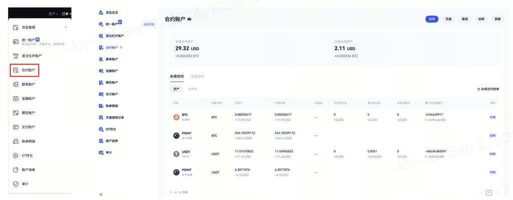 - 也可以通过顶部导航栏右上角的“资产” > “合约账户”查看您的资金。