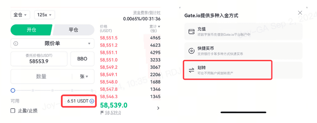 ②确认要划转的保证金币种或点卡;