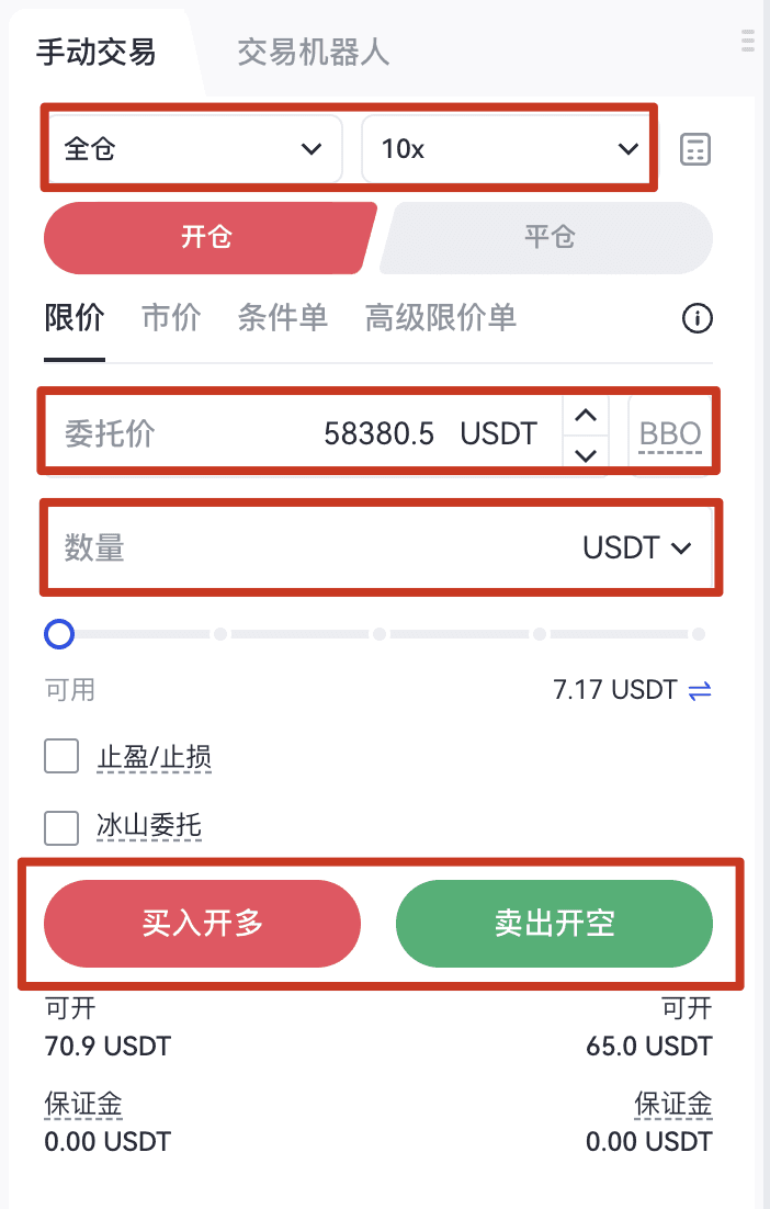 在下单区,选择杠杆倍数,输入价格、数量,并选择“买入开多”或“卖出开空”按钮进行下单。 - 查看持仓情况:
