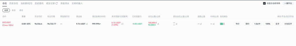市价反手:当您判断市场趋势即将反转时,先以当前市价平掉已有仓位,同时取消未成交的挂单,再根据原仓位的数量和杠杆,在当前市价下反方向重新开仓。