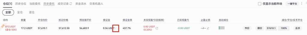 您可以在【仓位】页面点击【编辑】图标,在【调整保证金】弹框中输入您想增加或减少的保证金金额,然后点击“确定”。