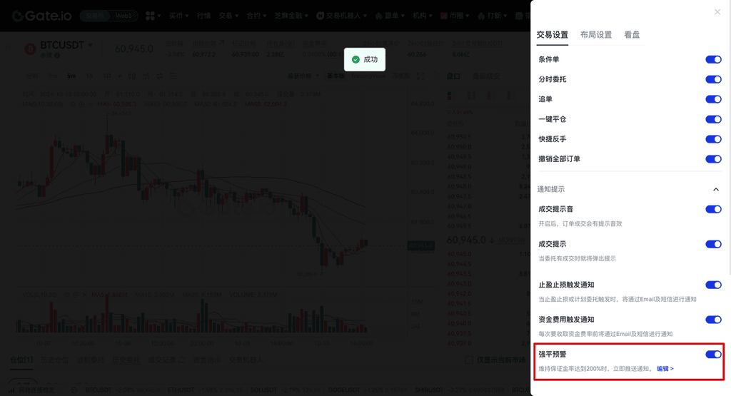 Gate 合约强平预警能让用户在保证金率接近预设阈值时收到通知,帮助及时应对风险,避免强制平仓。