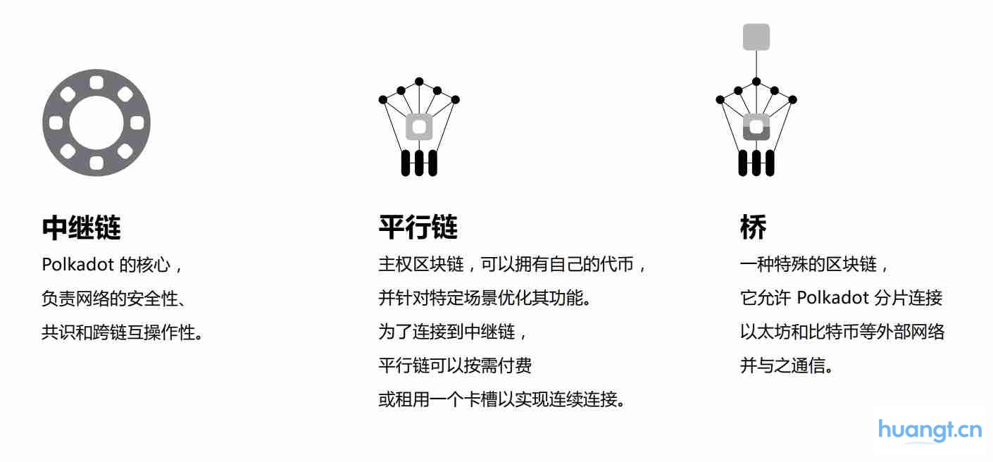 Polkadot 的技术架构由以下三个核心部分组成: