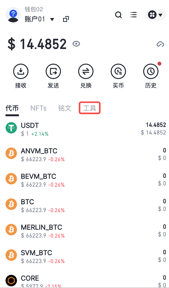 1.在插件钱包页面点击「工具」一栏,选择「批量导入私钥」;