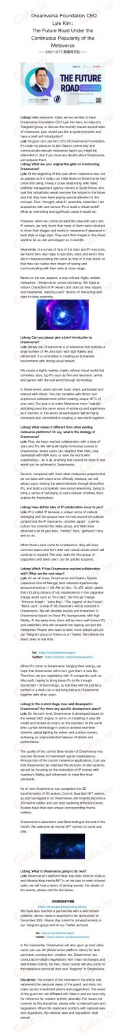 Gate.io - 2021年12月17日:Dreamverse Foundation首席执行官Lyle Kim谈元宇宙的未来发展趋势