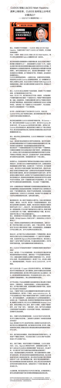 CUDOS创始人Matt Hawkins谈质押上线:如何抓住分布式计算的机遇?