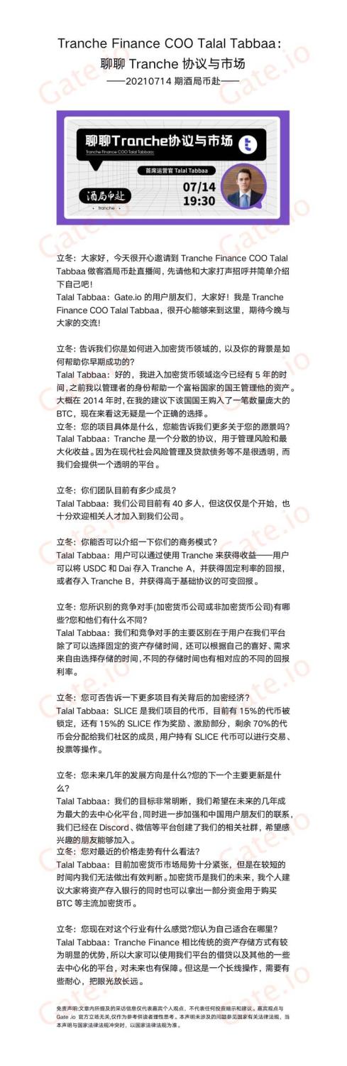 Gate.io - 2021年7月14日:Tranche Finance首席运营官Talal Tabbaa谈Tranche协议及其市场前景