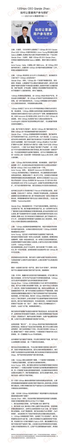 普通用户如何参与挖矿?——Gate.io 20210414 12Ships CEO Qianjie Zhao的解读
