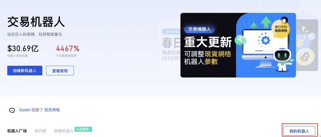 3.创建机器人的机器人参数与机器人生效时交易对参数不匹配会创建失败(例如网格交易,机器人生效时最新价格未在上下限价格区间则会创建失败)。