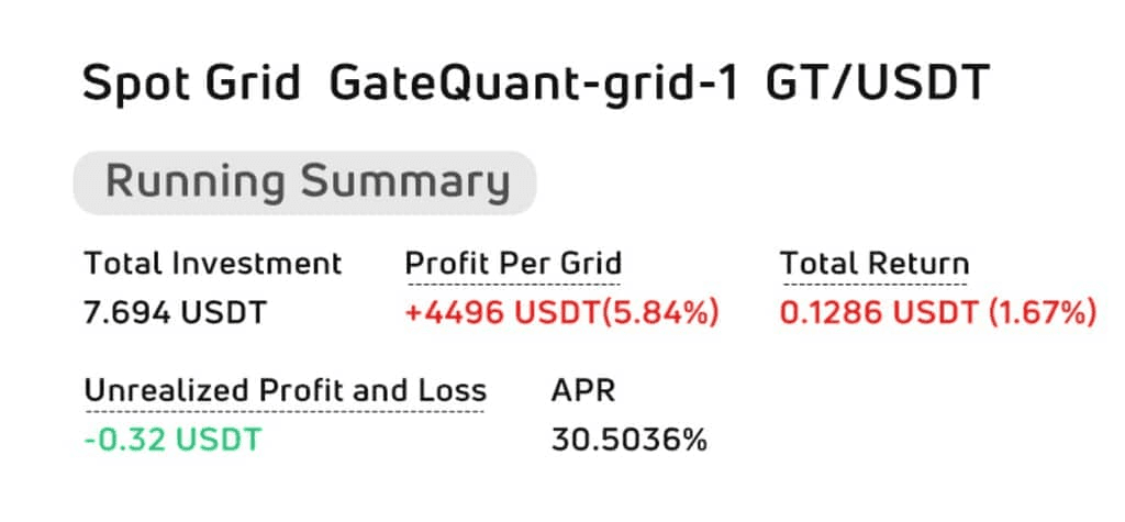上面的例子解释了部分用户为什么在没有完成一套完整的交易之前就赔钱的问题。用户通过网格策略买入了一定数量的币,但在卖出之前,币价就下跌了,所以用户账户出现了负浮动盈亏。等到币加上浮动盈亏就会变成正数。