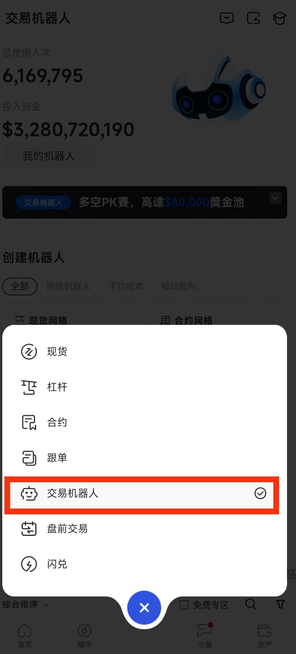 2.跟单创建:如果智能创建未能满足您的需求,可在推荐机器人板块筛选出优质用户,并复制机器人;
