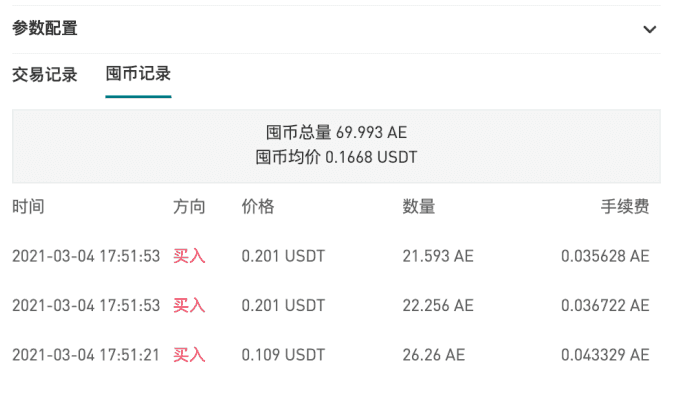 注:当网格套利一买一卖利润不足系统每次下单最小金额时,会暂时把利润存储起来,当利润达到最小下单金额时才会按市场最新价买入币。