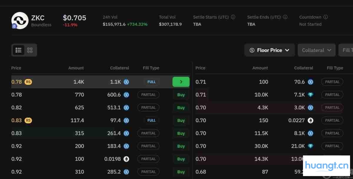 当前该平台上的 ZKC 报价为 0.705 美元,跌幅接近 12%。然而,24 小时内交易量激增超 734%,达到 155,971 美元。买方订单以大额为主,出价区间分布在 0.8 至 3.5 美元之间。