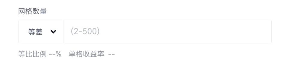 网格数量:网格数量即挂单数量执行网格的数量,挂单数量越大则网格越密集,高抛低吸次数会更多(限制 2 到 500)。