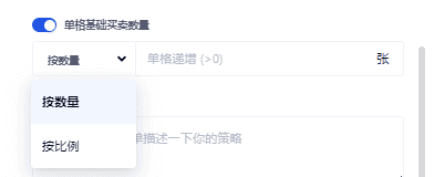 数量递增:数量递增默认是关闭状态,当开始时您可以选择按照数量,或按照比例来增加每个网格的买卖数量,如图所示: