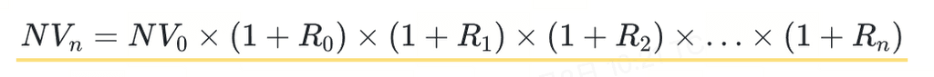 2.收益率=(净值−1)×100%=[1 (1 + R0) (1 + R1) (1 + R2) (1 + Rn)-1]*100%