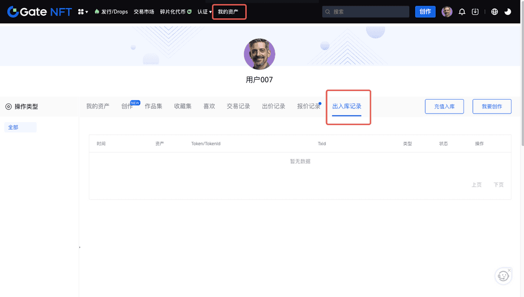 Step 4:充值完成后,系统会自动确认,可在我的资产页面出入库记录中找到您所充值的 NFT 资产。