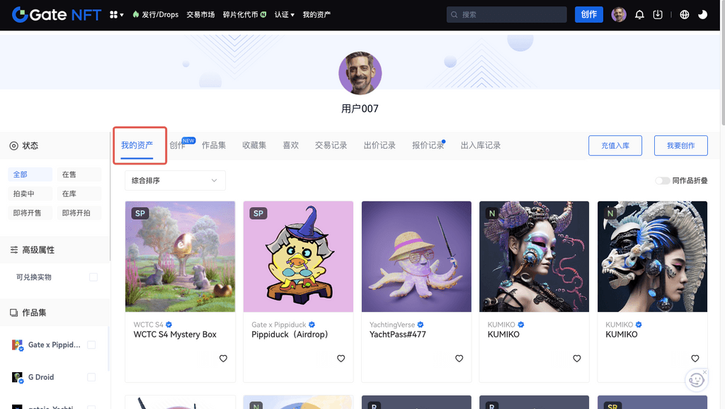 Step 2: 在我的资产页面选择并点击您想要提现的 NFT 资产。