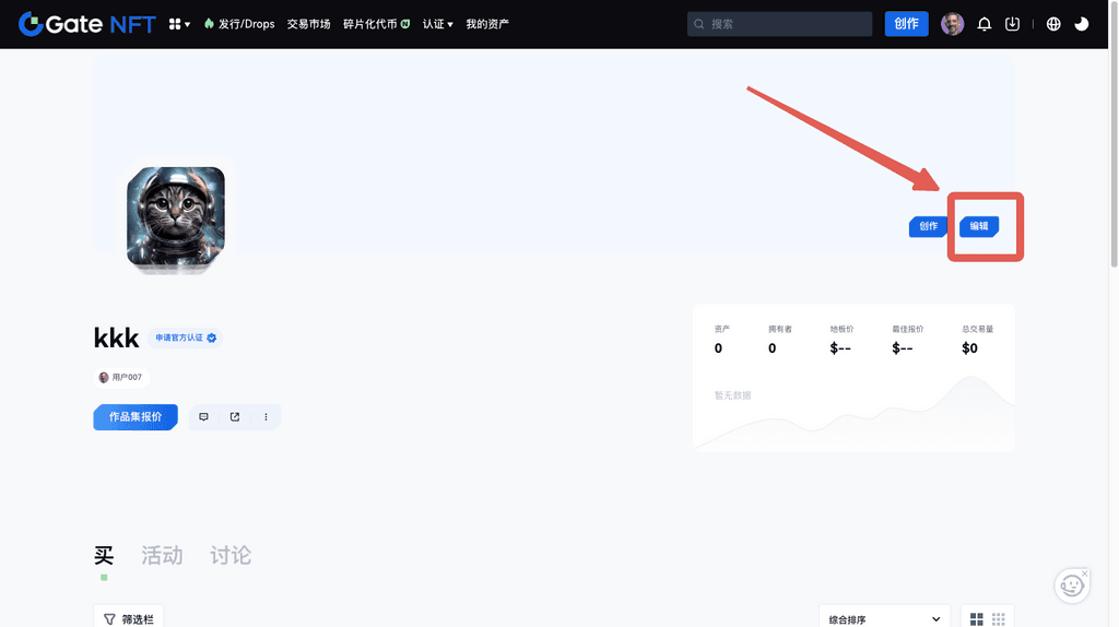 如需更新您现有的 NFT 作品集相关信息,请点击作品集卡片,进入其详情页面,找到并点击右侧的「编辑」按钮,进入作品集编辑页面,可对相关内容进行编辑更新。