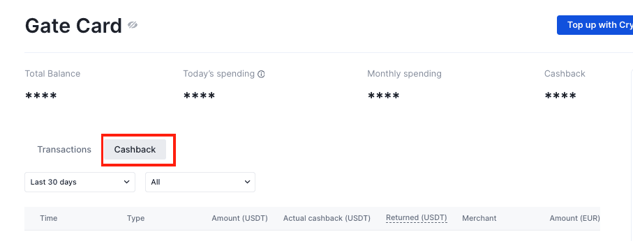 -USDT rewards will be credited to the spot wallet daily after eligible transactions are made via Gate Crypto Card.