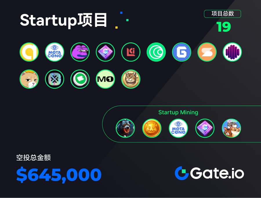 本周期Gate上线了个13新项目和19个Startup项目,总空投价值为64.5万美元。