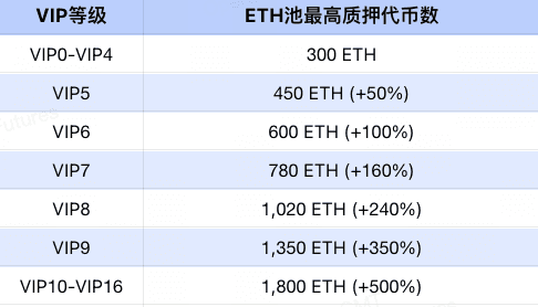 VIP5 及以上用户参与Launchpool享有专属质押额度提升权益,最高可享500%质押额度加成。