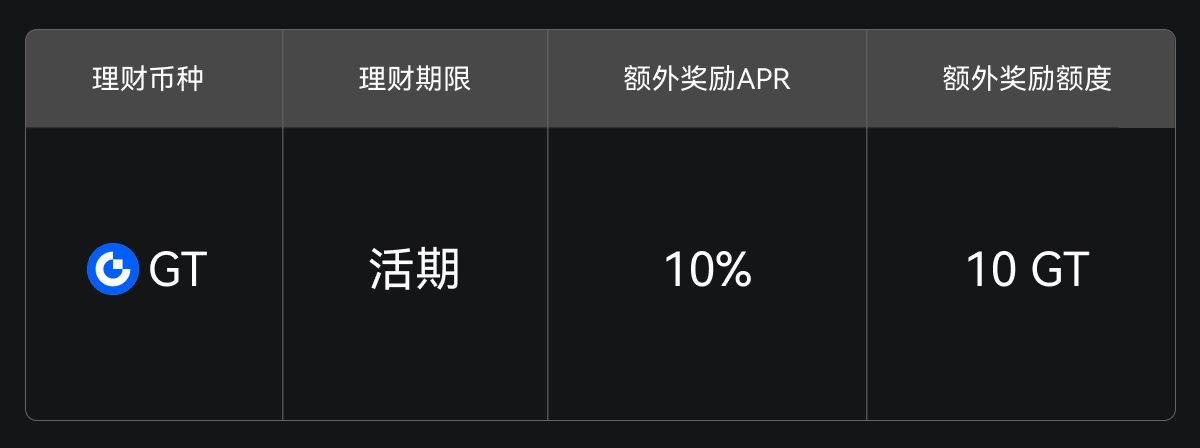 申购 GT 活期理财,享 10% 年化额外奖励,累计 150,000 枚 SKATE 额外奖励,先到先得。