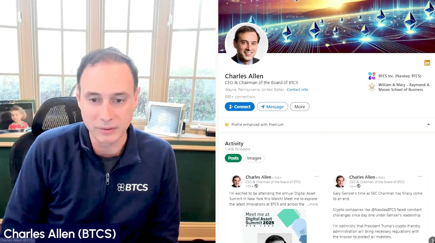 与前面三位比,BTCS 的 CEO Charles Allen 相对低调。