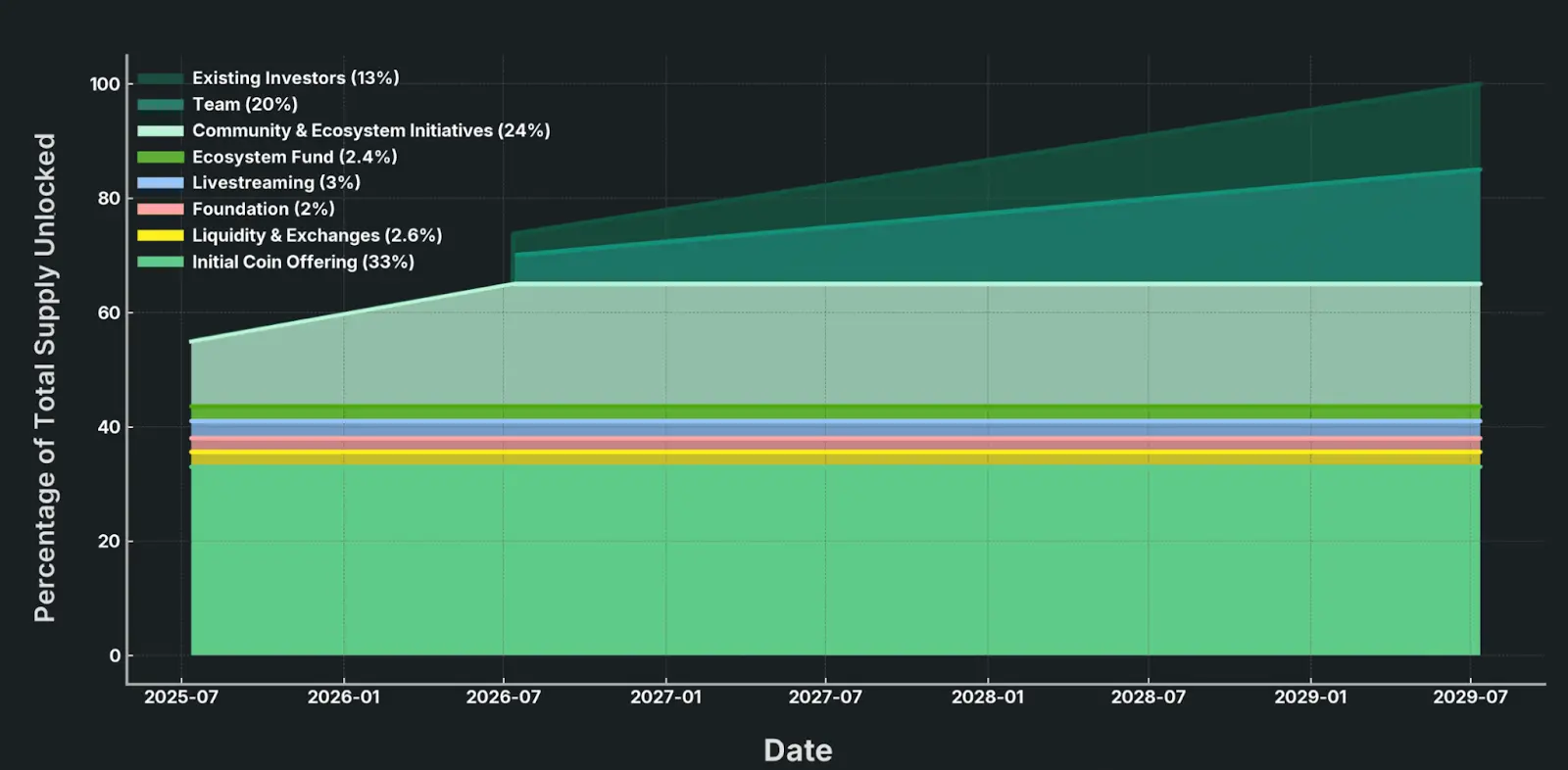 代币发放:销售结束后 48–72 小时内发放,并在发放后 48–72 小时内可自由转账