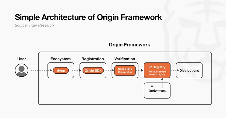 Origin 框架是 Camp Network 的核心 IP 管理工具,涵盖了 IP 的注册、管理、利用和收益分配。用户可以通过 Origin SDK 或 Camp Network 提供的市场上传多样化的 IP 内容,这些内容将以 ERC 721 基础的 NFT 形式记录在链上。Origin 的最大特点是其“图”结构,它通过父子关系连接衍生内容和原始 IP,确保了收益的自动分配。